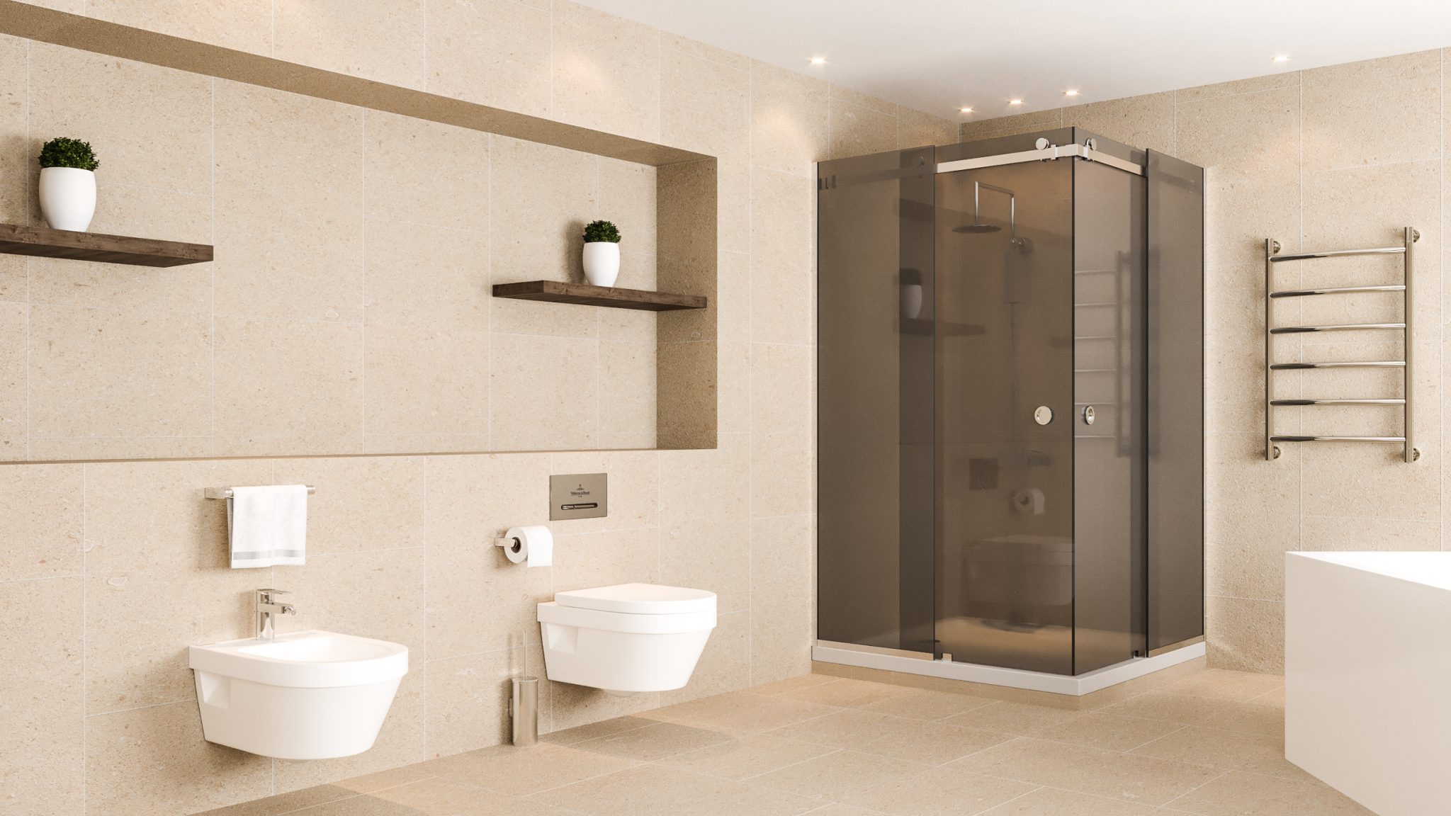 Colorată în masă (Bronze sau Gri) este sticla float la care se adaugă în timpul procesului de fabricație un pigment maroniu/gri, scăzând astfel transparența acestuia. Este recomandată utilizarea unei astfel de sticle pentru adăugarea unei pete de culoare în băile clasice, sau, pentru asortarea cabinei cu restul băii, în cazul în care design-ul este unul mai deosebit.