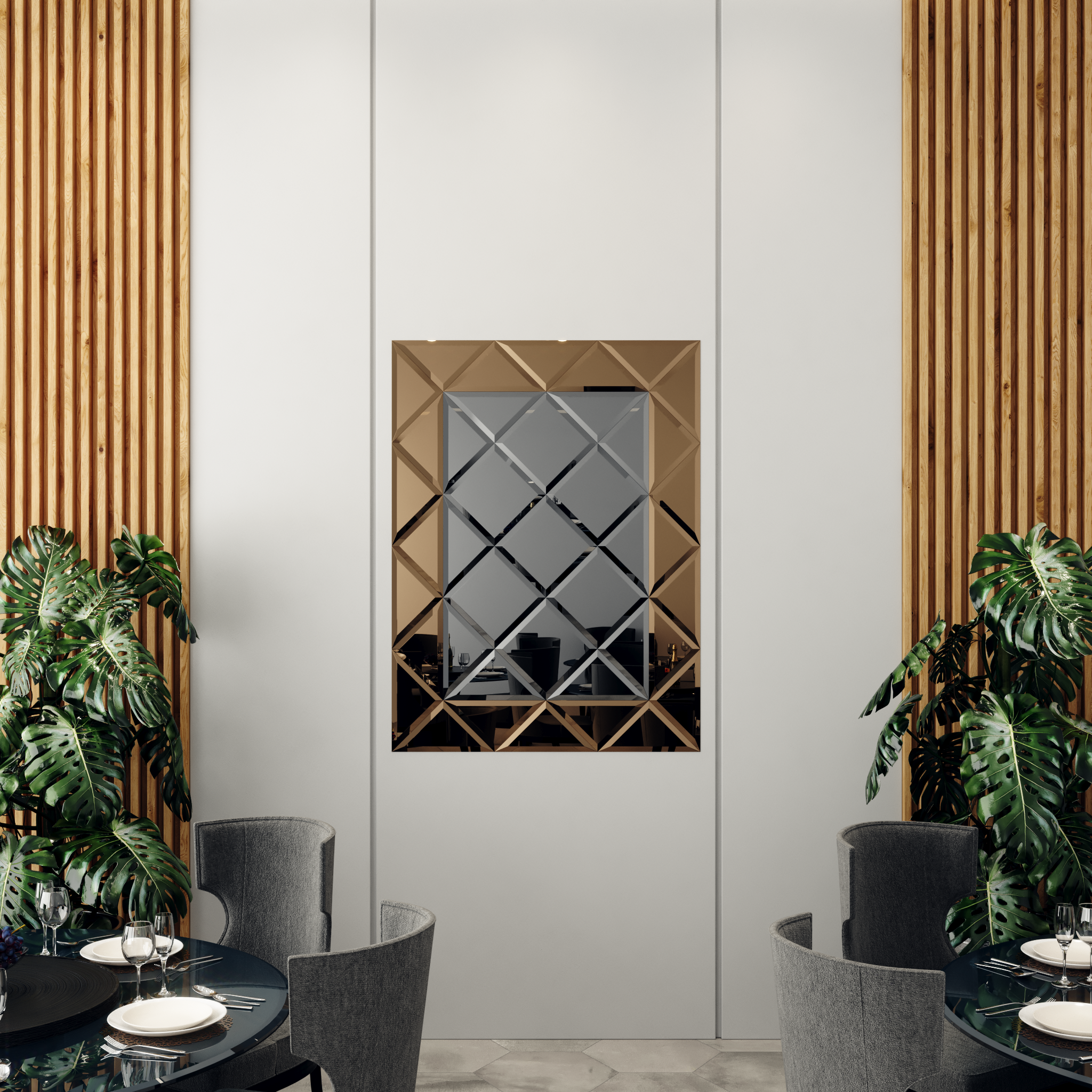 Tip produs: Panou Oglinda Fazeta 1125 x 1500 Gri cu perimetru Bronze