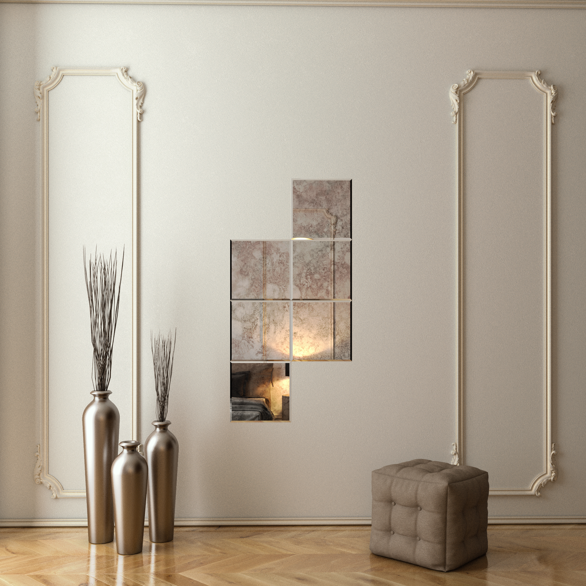 Set Oglinda Antichizata cu fazeta 20 mm contur, forma patrata ,6 bucati, 40cmx40cm/buc